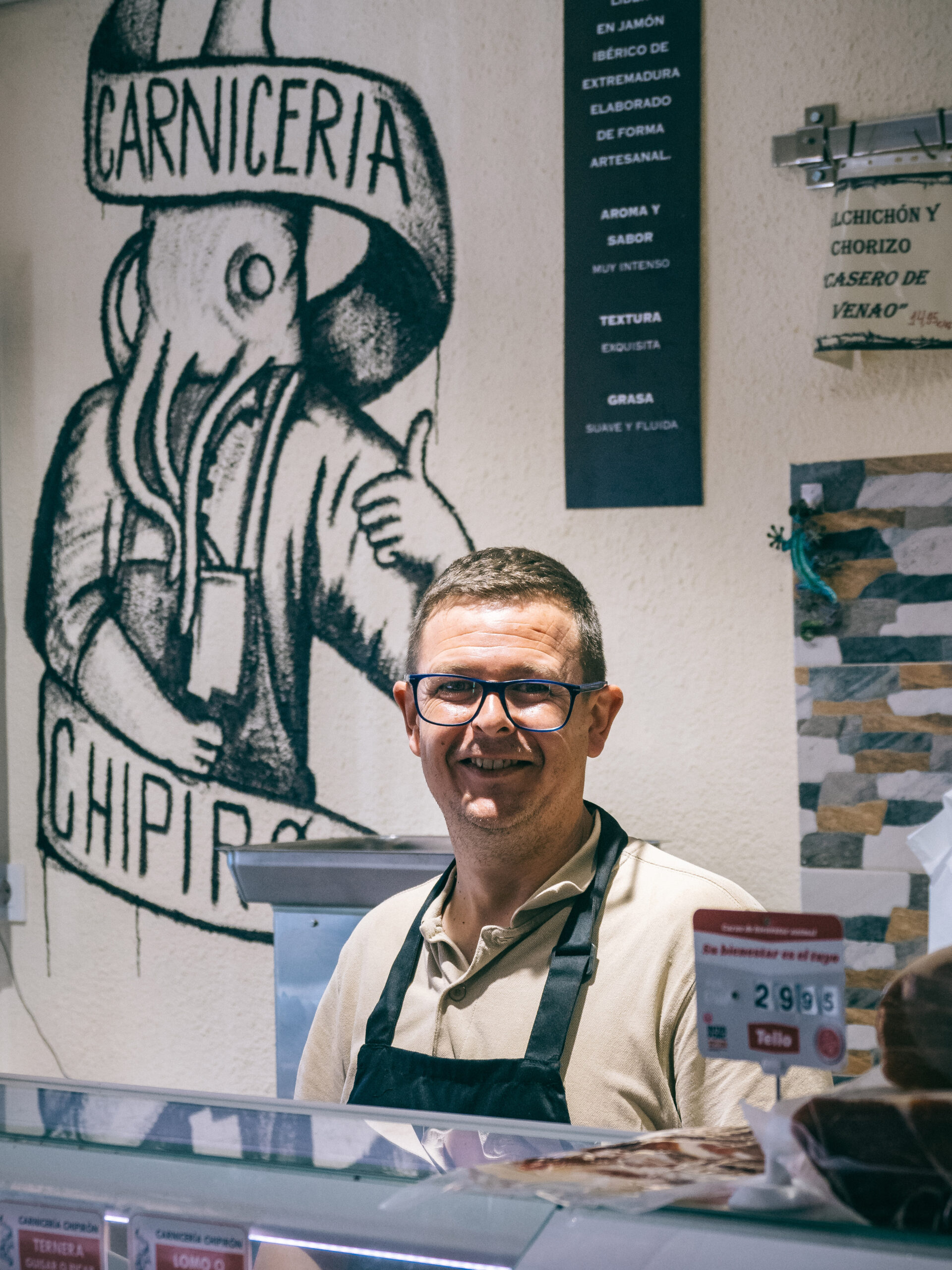 Juan Luis García Barbero, alías El Chipirón, carnicero por vocación y tradición familiar enarbola la bandera del oficio de siempre, del que reivindica el carnicero que sabe hacer de todo, desde que la vaca pasta en el campo hasta el momento que la sirve al cliente que, un día cualquiera, abre la puerta de su establecimiento, un local donde la calidad, la carne de verdad es la gran protagonista.