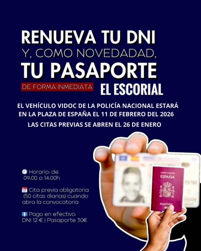 Todos los ciudadanos (empadronados y no empadronados) podrán obtener su DNI y Pasaporte sin salir del municipio. Para llevar a cabo este trámite, la unidad móvil VIDOC de Policía Nacional se desplazará hasta la Plaza de España el próximo 11 de febrero. Una iniciativa que precisa de cita previa que puede solicitarse a través de […]