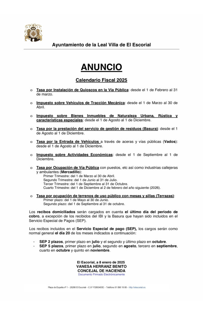 El Escorial facilita el pago de impuestos con nuevas medidas para 2025