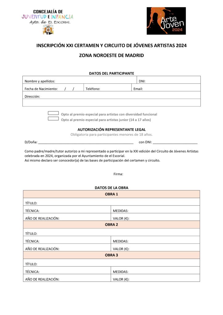 La Concejalía de Juventud de El Escorial organiza, un año más, el ‘Certamen y Circuito de Arte Joven’.